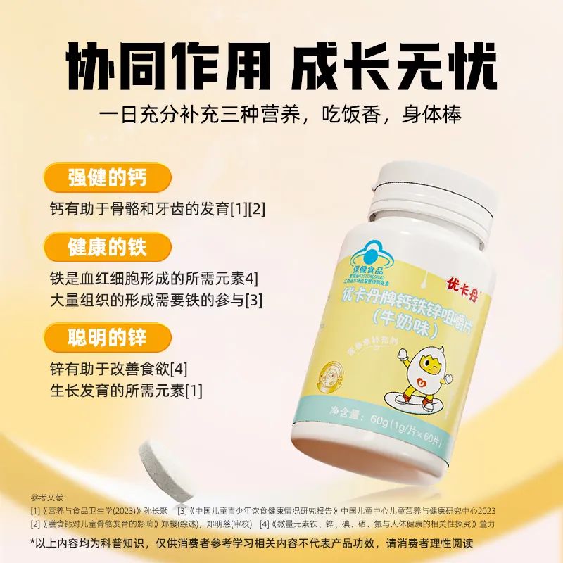 優(yōu)卡丹牌鈣鐵鋅咀嚼片│鈣鐵鋅同補(bǔ),抓住黃金期,成長(zhǎng)沖新高