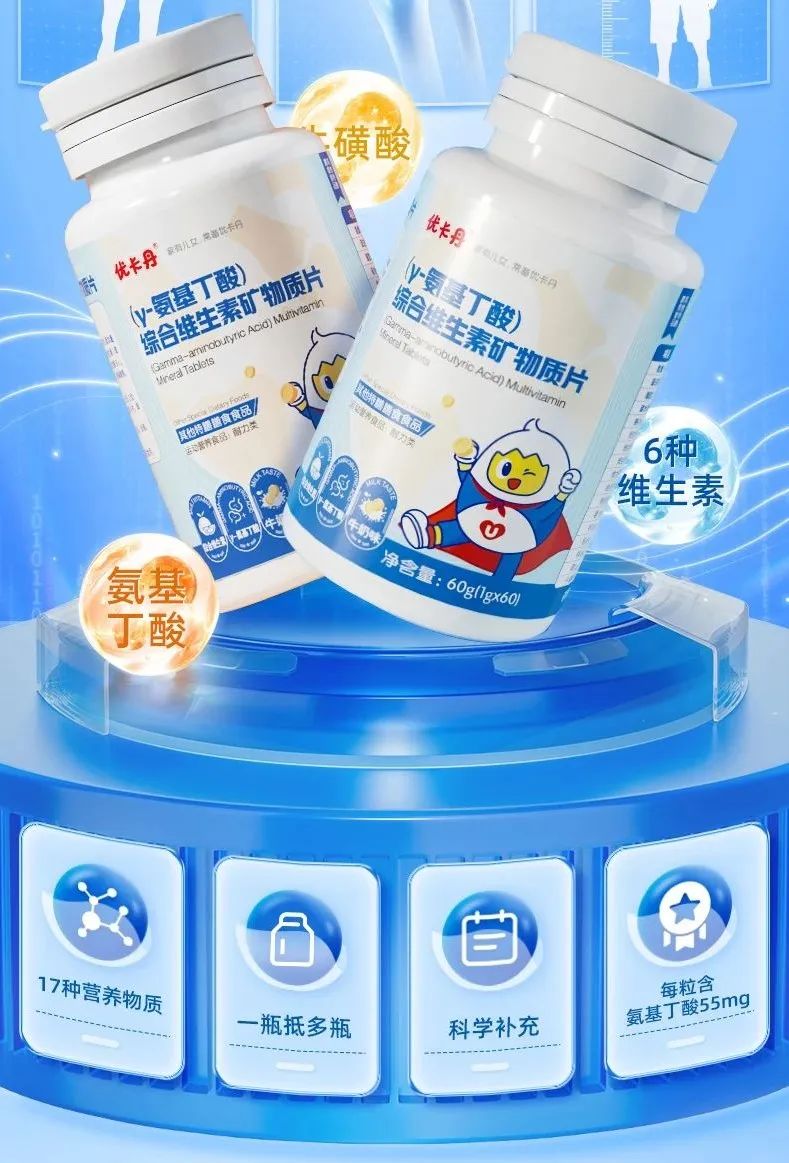 優(yōu)卡丹(γ-氨基丁酸)綜合維生素礦物質(zhì)片│17種營養(yǎng)物質(zhì),成長沖新高