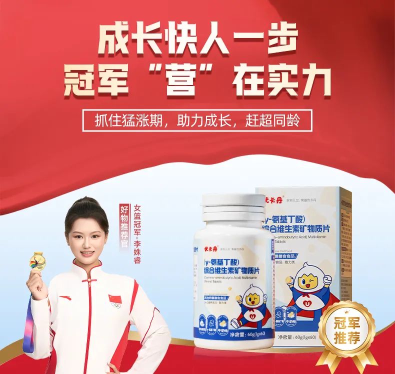 幸好找到了清除障礙的鑰匙——現(xiàn)役女籃冠軍李姝睿推薦的優(yōu)卡丹(γ-氨基丁酸)綜合維生素礦物質(zhì)片,它成為孩子們成長路上的能量棒!