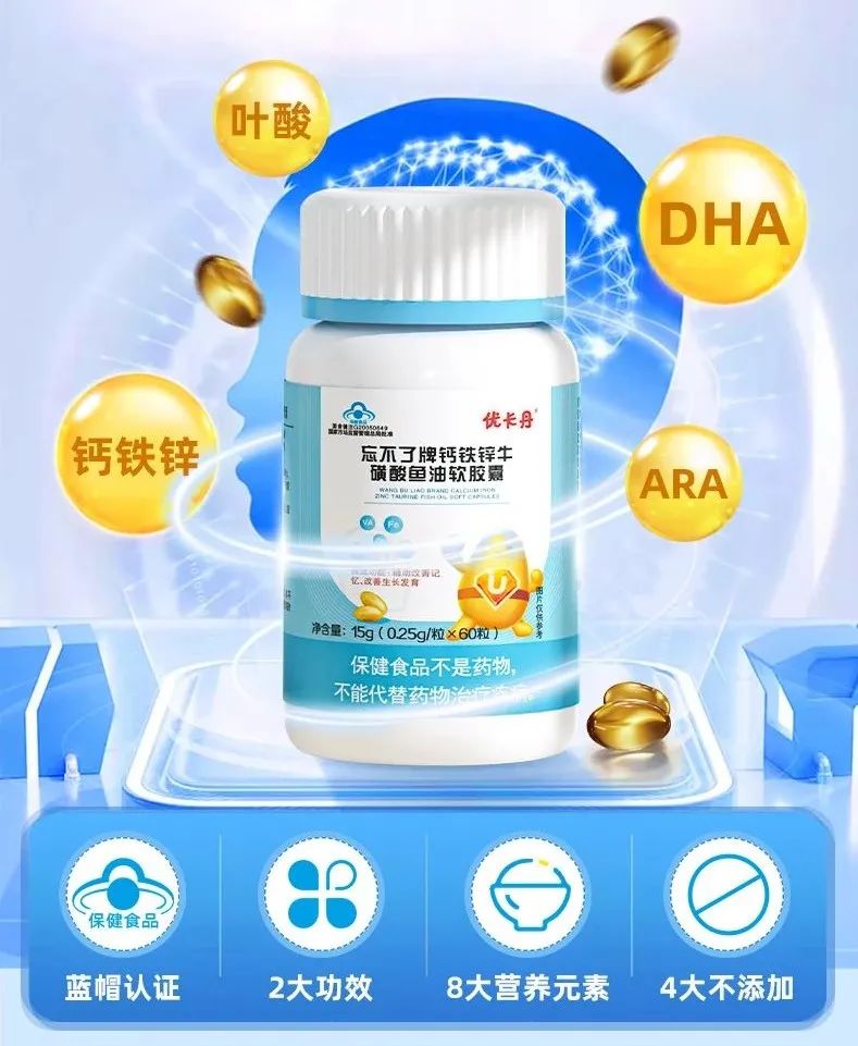 優(yōu)卡丹忘不了牌鈣鐵鋅?;撬狒~油軟膠囊│輔助改善記憶,改善生長發(fā)育保健功能