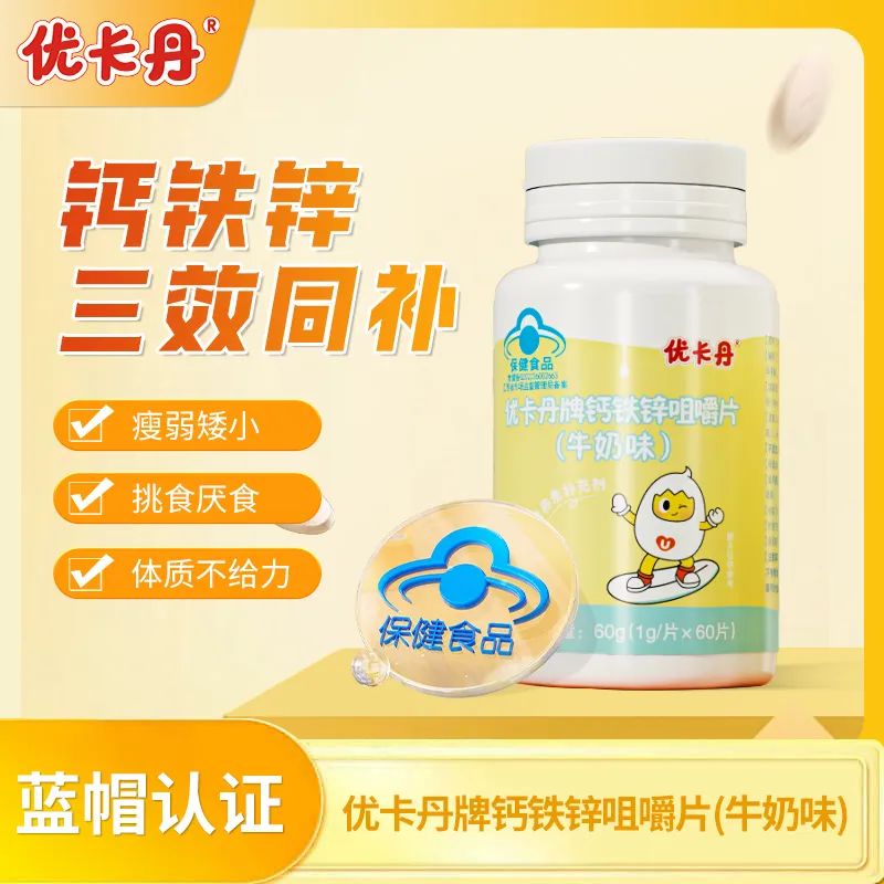 優(yōu)卡丹牌鈣鐵鋅咀嚼片│鈣鐵鋅同補(bǔ),抓住黃金期,成長沖新高